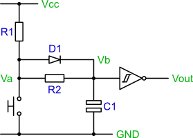 debouncing circuit. The basic idea is to use a capacitor to filter out any
