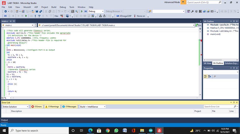 Studio or Atmel Studio to debug and correct the code to get the desired output.